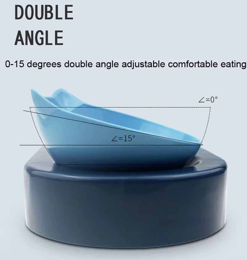 The bowl angle can be adjusted from 0 to 15 degrees, allowing your cat to eat in a more natural position. This tilted design helps reduce strain on the neck and makes it easier for food to stay centered in the bowl, improving overall feeding comfort.